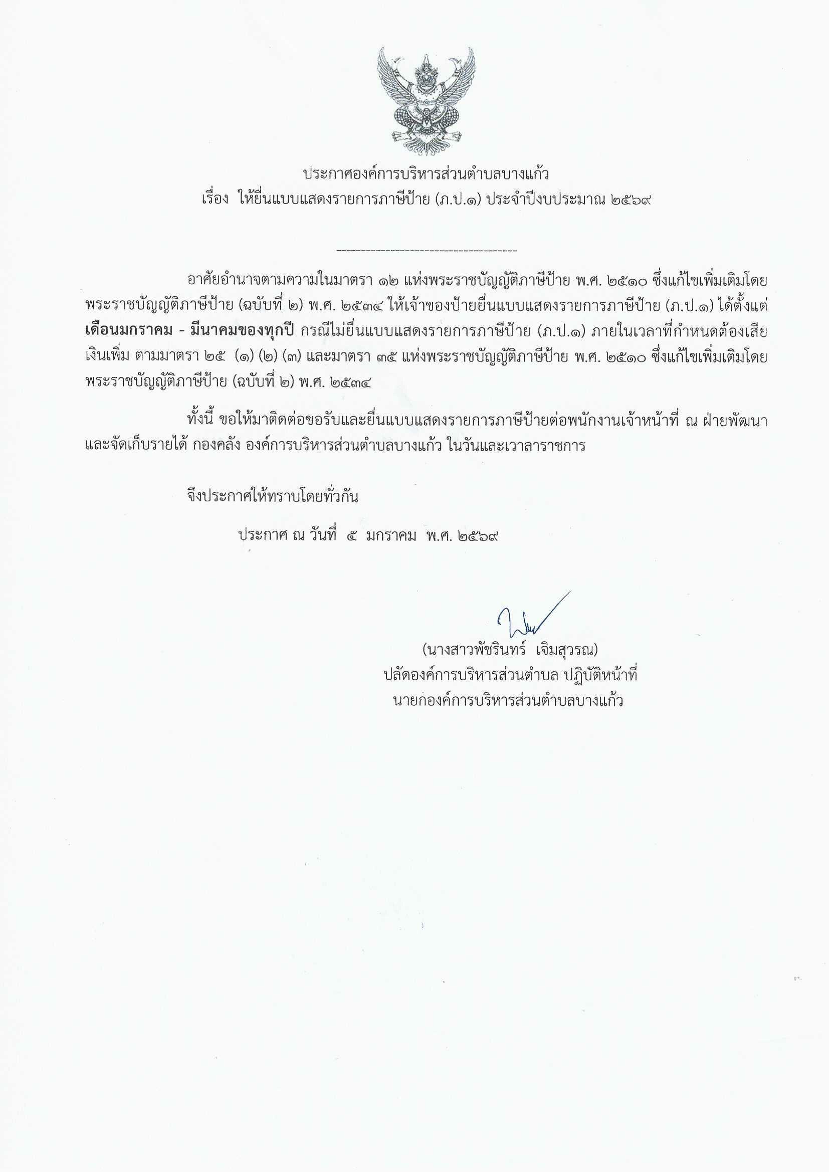 กำหนดการยื่นแบบแสดงรายการเพื่อเสียภาษีป้าย (ภ.ป.1) ระหว่างเดือน มกราคม ถึง มีนาคม พ.ศ. 2569